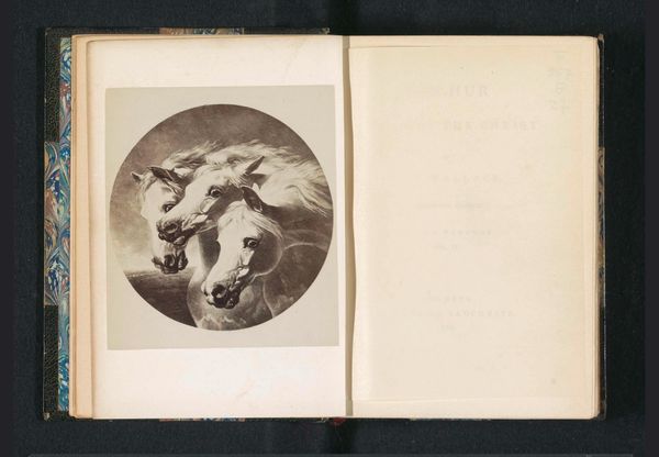 Curator: Immediately striking. The gelatin-silver print captures the dog from an interesting perspective—it seems to float slightly in a vertical dimension! Editor: Indeed. What we have here is a photograph of a hunting dog named Tamerlan. This work, dating from before 1879, is by the artist Léon Crémière. The composition shows us Tamerlan posing beside what looks like the bottom of a set of stairs. Curator: The tonal range is quite narrow, mostly grayscale variations. This evokes a very muted feeling... almost somber, as if mourning some loss. I see an inherent tension between the smooth texture of the animal and the coarse stone-like material which encloses the dog. Editor: This somber feeling likely comes from understanding photography's social role at the time. The development of portable cameras had begun influencing public habits, making individual portraits and family documentation quite common. Photographic portrayals, then as now, offered both prestige and a sense of memorializing. Curator: Yes, exactly! And if one looks carefully, the leash connecting dog to owner exists only via suggestion. Is Tamerlan obediently in place awaiting instruction, or simply tethered there as a spectacle of photographic ingenuity? Is Tamerlan a willing subject or a subjugated actor? Editor: This photograph participates in the rise of leisure culture. The rising middle class had cultivated an appreciation for dogs as status symbols, emphasizing loyalty, sport, and upper-class lifestyle in an era of rapid urbanization and expanding consumerism. So it is both personal portraiture, and political theatre, right? Curator: Precisely. Crémière cleverly exploits this cultural landscape. Though formally modest, its resonance persists because Tamerlan exists outside common spatial logics within an atmosphere pregnant with class meaning. Editor: Well put. Photography freezes both light and history, enabling complex meanings. It’s so clear here! Curator: Indeed—even without fully resolving them.