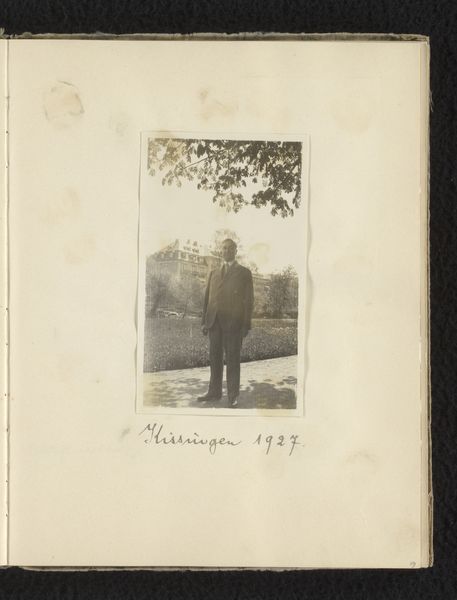 This is a page from the Wachenheimer family album, two snapshots from their engagement day, August 1922, in Germany. The images are sepia toned, like memories burnished with time. The exposure is even across the surface, creating a flat field with soft gradations. On the left, we see Else and Eugen standing stiffly, formally. On the right, a solo portrait of Eugen, looking directly at the camera. It's as if the two images work as a diptych, or mirror; the way the pictures sit on the page calls to mind Jasper John's early minimalist paintings. These photographs function as a testament, an artifact of a very specific moment, with a feeling of being present at an occasion. The Wachenheimers were murdered in Auschwitz just two decades later, making these photographs a poignant memorial. They have the effect of early Christian devotional paintings, which transcend the status of art, becoming something more akin to sacred relics.