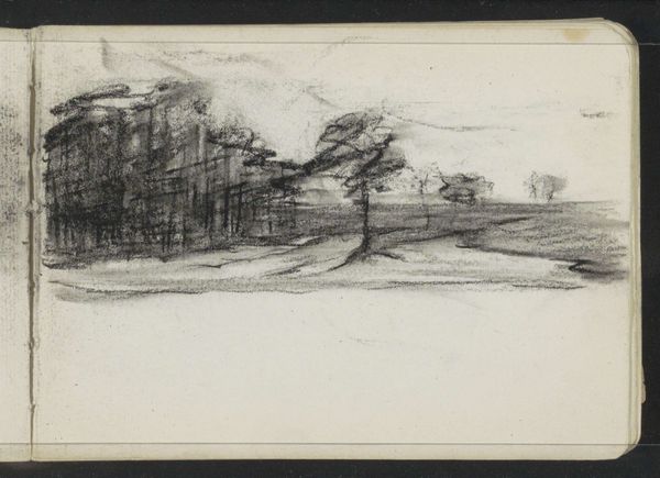 Curator: Let’s turn our attention to Peter Becker's 1893 drawing, "Eingang zum Dorf Wasenberg im Schwalmgrund," housed right here at the Städel Museum. It's a pencil sketch on paper, capturing a village entrance. Editor: My immediate impression is one of quietude. The scene feels almost dreamlike, the pencil work creating a soft, muted atmosphere. It's less a documentation, more a memory. Curator: Interesting observation. From a material standpoint, the choice of pencil is key. Pencil allowed for quick plein-air work, immediate translation of the landscape. You could literally sit on a hill with accessible material in hand. Editor: And think of the iconography inherent in landscapes of that time. Villages like this were potent symbols of tradition and cultural continuity, especially during periods of rapid industrial change. Each structure hints at social hierarchies and local narratives. Curator: Right, there’s a dialogue here. On the one hand, a traditional material like pencil and paper butting up against what's beginning as nascent urban life and the growth of more available commercially manufactured colors as artists' paints. Editor: The hazy treatment lends itself beautifully to romanticism. See how that faint figure stands off in the distance almost like a phantom? Almost nostalgic. It implies something permanent can vanish. Curator: Consider that in relationship to process, though. How quickly this kind of document is made also means that these rapidly disappearing places risk being lost in memory altogether, becoming nostalgic images instead of active community centers. The artistic labor almost directly resists the oncoming industrial revolution. Editor: Ultimately, I think that soft, evocative power endures, irrespective of medium. That ability of the sketch to evoke and hint more than define. That the figures recede while the landscape advances speaks volumes about what Becker wished to convey to future generations, as if he had a feeling of losing something invaluable. Curator: And the making process itself, the easy portability and accessibility of pencil and paper, almost insists on preservation. These images have a different relationship with commerce than something grander, in scale or materials. The artwork, in its very creation, preserves culture. Editor: I see it—how materials, method, and symbolic message converge in this wistful record. Curator: It offers insight into that moment of shift, material, and message aligned with the transition.