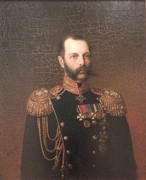 Editor: We're looking at Henryk Siemiradzki's "Portrait of Ludwik Wodzicki," painted in 1880 using oil. It’s strikingly formal, even theatrical, with the sitter’s elaborate costume. How do you interpret this portrait in terms of its historical context? Curator: Well, this portrait reflects the evolving role of the Polish aristocracy in the late 19th century. Note how Siemiradzki presents Wodzicki: his pose exudes power, but it's tempered by a sense of cultivated elegance, suggesting a man of both action and refinement. Consider the socio-political pressures of the time. Poland was partitioned, so how might this portrait serve to reinforce a sense of national identity amongst the elite? Editor: That’s fascinating. I hadn't thought about it as a statement of national identity. The subject's clothing seems particularly symbolic, too. Is there a specific meaning to that ornamental sash? Curator: Exactly. That sash, and other elements of Wodzicki's attire, signal his status and allegiance. But the key question is, to whom and what does his status allude? The trappings might evoke an idealised Polish past as a counterpoint to contemporary political realities. Can art then serve as a form of subtle political resistance or cultural preservation? Editor: It sounds like the artist and sitter are carefully crafting an image to be interpreted by a very specific audience. So much is being communicated through details. Curator: Precisely. Siemiradzki was keenly aware of his audience and the institutions that supported his art. This portrait participates in a dialogue about Polish identity, nobility, and the complex relationship between art, power, and cultural memory. Editor: It’s amazing how a portrait can become a lens through which we view the socio-political climate of the time. I’ll definitely be paying closer attention to those kinds of details in future artworks. Curator: Indeed! These portraits offer valuable insights into history when viewed with consideration of cultural and political contexts.