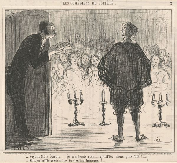 Curator: Here we have a piece titled "Spotprent over de behandeling van de Agrarische wet in de Eerste Kamer, 1870," a drawing by Johan Michaël Schmidt Crans from the year 1870. It's rendered in ink, likely for a print. Editor: My first impression is that the figure seems staged—there’s a theatrical element that sets the mood for social critique, doesn’t it? Curator: Absolutely. It satirizes the Conservative Party's handling of agricultural laws in the Dutch Senate. The setting within the “Eerste Kamer” suggests a political theater. Editor: I'm fascinated by the deliberate use of drawing here. The lines are spare yet expressive, conveying texture, form, and a sense of movement with incredible efficiency. Ink lends itself beautifully to reproduction, speaking volumes about the artist's intent and production goals. Curator: Right, and consider the tradition of caricature during that time. Publications used these types of works to sway public opinion. The scale probably played into how widely this was disseminated and consumed. Editor: It's clear the artist engaged closely with materials accessible to a mass audience. But consider the craftsmanship, it challenges our typical notions of high and low art, doesn't it? It speaks to labor, mass culture, and artistic purpose beyond just aesthetics. Curator: It’s more than just aesthetically pleasing; it’s about social commentary. The artist critiques those in power and, importantly, makes that critique accessible to a wider audience. It shows how societal conditions shape the work. Editor: Yes! It underscores the importance of materials and labor in conveying cultural messages. In short, a deeper consideration for how this print was made adds a significant layer of richness to understanding its message. Curator: A fitting lens to examine not just the what, but the how and why of visual communication, wouldn’t you agree? Editor: Indubitably. Understanding the material and social underpinnings allows us to truly decipher its continuing value.