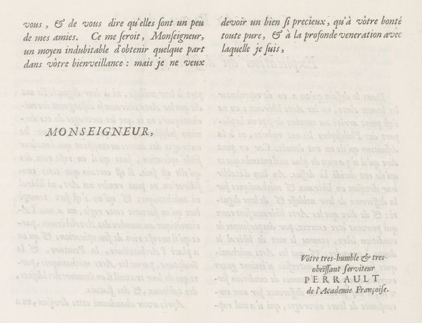 Editor: So, this is *Forord til "Los Desastres de la Guerra", 1863-udgaven*, by Francisco Goya, made with etching, engraving and paper. It’s…text. I mean, it *looks* like the pages of a book, right? But being here in the museum, blown up like this, you can appreciate the way it’s been printed on the page. What catches your eye, when you look at it? Curator: What grabs me is thinking about *how* this object was created. Goya’s "Disasters of War" series…these weren’t paintings for a salon, right? They are prints, produced through etching and engraving. Consider the labor involved. He's mass producing these images. So what happens to Goya's status as a creator when his work can be owned by many instead of the wealthy few? How does that shift the dialogue between artwork and viewer? Editor: Ah, that’s interesting! So, rather than just thinking about what the text *means* – which is…frankly, beyond my high school Spanish! – we think about how Goya chose *this* medium, printmaking, to disseminate his ideas on war. But couldn't he achieve similar outcomes using paints? Curator: Well, paintings would've limited access and made the statement itself a very different one. Prints are reproducible, cheaper and circulated more widely and freely. Here, Goya, like many artists of his time, critiqued social hierarchies and historical atrocities not only through their chosen subjects, but the media used in producing them, blurring high art with craft and even social commentary. Editor: I see. So the medium isn't just a delivery system, it's an integral part of the statement. Considering its cultural impact makes you look at Goya in a new way. I’d thought it was *just* text. Curator: Exactly! That’s materiality for you: questioning how a piece’s cultural and historical context influence the artist and transform our interpretation.