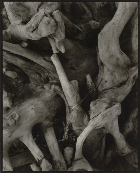 Editor: This is "Willows Along Cache la Poudre River, Colorado," a photograph, a gelatin-silver print, by William Wylie, possibly from between 1997 and 2009. The monochrome lends it a starkness, almost a rawness, doesn't it? What do you see in this piece, something beyond just a tree and river? Curator: Well, for me, it’s about the weight of time. You’ve got this ancient willow, clinging to the earth, its roots like veins exposed, vulnerable. And the water...it’s not still, is it? It's a river, constantly moving, carrying away debris, memories, all the while reflecting the light. There’s a certain tension, wouldn't you say, between the solidity of the tree and the fluidity of the water? Editor: Definitely, that tension creates a stillness. It feels almost meditative. Curator: Meditative, yes, precisely! It asks us to contemplate our own place in that dance between permanence and impermanence. What I adore most is Wylie’s keen eye for details - how the light creates dramatic patterns on the bark, for instance, or how the exposed roots seem to mimic the tangled branches above. Editor: I like how the darkness seems to envelope the image. You think that’s just for effect? Curator: I'm not so sure about *just* for effect, but that's not to say it is accidental either! You know, I often find darkness in photography so compelling because, maybe counterintuitively, it draws our attention toward details we might have otherwise overlooked. Editor: It's true. Thinking about that tension now, and the meditative stillness of the photo, that helps me see this landscape differently. More personally. Curator: Exactly. And isn’t that what art should do? Shift our perceptions, reveal new depths within the familiar. It reminds us to slow down and look, *really* look, at the world around us.