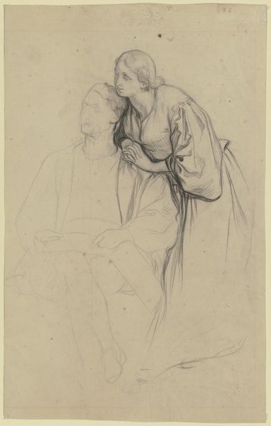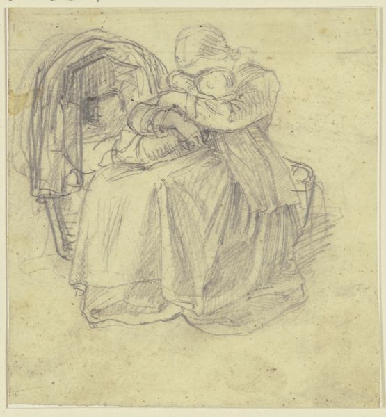 Paul Lacroix created this delicate drawing, "The Bud and the Blossom," likely during the mid-19th century. Its sentimental depiction of motherhood reflects the era’s emphasis on domesticity and the idealized role of women as nurturers. The image presents us with the conventional representation of a woman and child. Yet, we might also consider this image in light of the complex realities facing women in the 19th century, as they navigated expectations around marriage and motherhood. Lacroix's wispy lines and gentle shading evoke a tender emotional connection. The drawing gives a feeling of intimacy. But we may wonder about the untold stories and social constraints that defined these women's lives. This image speaks to both the beauty and the restrictions of the time, inviting us to reflect on the personal experiences of women within broader cultural narratives.