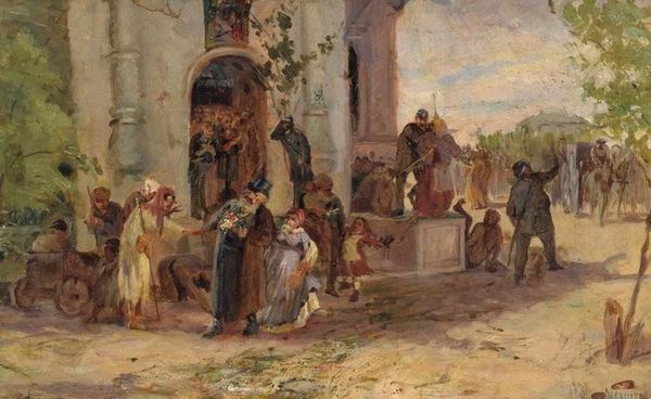 Edwin Austin Abbey captured this moment from Romeo and Juliet in oils, and it feels like theatre itself. The paint handling is quite dry, a very matte surface. In fact, it looks like you could run your hand across the surface without smudging any paint. There's a lot of texture – the artist hasn’t been too precious about hiding his process. He’s really letting the materiality of the paint speak. Look at the stripey building behind the figures: that’s a lot of dragging the brush across the canvas, and the paint is fairly thin in places, and very opaque elsewhere. The red of Mercutio’s clothes feels really important. It is a very different red from the one on the building, it’s much more alive, a more urgent gesture in the painting, linking violence and emotion. Abbey’s work is strongly illustrative, but also brings to mind the work of pre-Raphaelite painters like Millais in its dramatic use of light and shade. With this work, like them, he's turning a story into a space of contemplation.