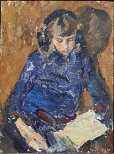 Editor: Here we have Czóbel Béla's "Olvasó Nő," or "Reading Woman," painted in 1916 using oil paint. The colours create a rather subdued mood; almost melancholic. What do you make of the formal elements at play in this portrait? Curator: Note the artist’s masterful manipulation of color to evoke precisely that subdued mood. The earth tones dominate, creating a sense of somber introspection. How does the composition itself contribute to the feeling you identified? Editor: The subject’s downward gaze and the slight asymmetry adds to the sense of pensiveness. The loose brushstrokes, typical of expressionism, seem to intensify the emotions, too. It’s a window into her state of mind. What about the use of line and shape? Curator: Precisely. Consider how Czóbel departs from realism. He employs flattened planes and simplified forms to construct the figure. Observe the sharp, almost Cubist-like facets in the face. The interplay between these fragmented shapes and the blurred edges gives the portrait a dynamic tension. What is your feeling on the lines created through light? Editor: Fascinating! I hadn’t considered the interplay of Cubist elements within an Expressionist context. Thinking about it, that angularity really does bring forth something interesting. And you’re right – it really emphasizes certain forms, and creates an intentional dissonance. Thank you for that formal deconstruction! Curator: The work reveals how much can be conveyed through a rigorous study of form and its semiotic potential. I will make sure to apply that approach from now on.