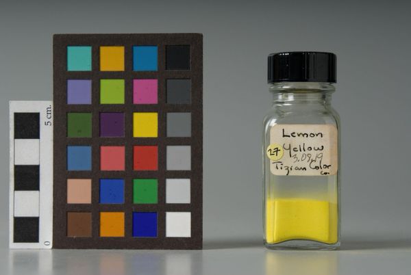Editor: This is Lamp Black, manufactured by Cabot. It’s presented with a color chart and a checkerboard grayscale. What can we understand about this singular object, Lamp Black? Curator: Well, let's consider what "blackness" signifies historically. Think about the ways in which black pigments, and the cultures that create them, have been perceived and represented. Is "black" an absence, or a powerful presence? Editor: So, you are thinking of race and representation? Curator: Exactly. The label "Lamp Black" and the manufactured nature of the object invites us to consider how art is both material and concept. Does this object challenge our preconceived notions? Editor: I hadn't thought about it that way, but I see how the history of art materials reflects much larger social issues. Curator: Indeed. It encourages a vital dialogue.
