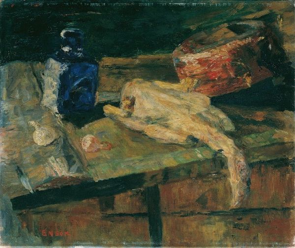 Andre Dunoyer de Segonzac made this still life with a cabbage with oil paint, and it’s all about the making, the process. It’s like he’s wrestling with the mundane, trying to find something interesting in everyday objects. Check out the surface, the way the paint sits up, thick and crusty in places, especially around that cabbage. It's not about smooth blending, but about the physicality of the paint itself. You can almost feel the push and pull of the brush, the artist's hand moving across the canvas. I love how he's used these whites, creams and browns to create a sense of depth, even though the colors are so restrained. The folds in the white cloth in the foreground are particularly interesting, a series of rapid strokes that catch the light and add a bit of drama. It’s reminiscent of Cezanne, who also found endless fascination in simple still lifes. Both artists invite us to slow down and really look, to appreciate the beauty in the ordinary, the way light plays across a surface, the texture of a humble cabbage. It’s a reminder that art isn’t always about grand gestures; sometimes it’s about finding magic in the everyday.