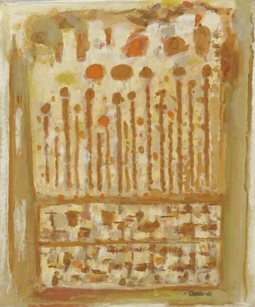 Editor: We're looking at Mark Rothko’s "Fantasy at Dawn" from 1946, crafted with oil paint. It's… otherworldly. Pale hues and indistinct shapes create a sense of ethereality, almost like figures dissolving into light. How do you interpret this work? Curator: The painting stands as a testament to the transformative era following World War II. The indistinct shapes, rather than pure abstraction, suggest a search for new forms of expression in a world grappling with trauma and shifting identities. Considering the political context, does the title "Fantasy at Dawn" hint at the cautious hope of a new era, yet one tinged with the anxieties of the past? Editor: That's fascinating. I hadn’t thought about the political implications. The dissolving figures you mentioned—do you see those as related to the loss and displacement experienced during the war? Curator: Absolutely. Many artists turned to abstraction precisely to move beyond the limitations of representational art in conveying such profound experiences. This particular piece makes me think of post-war anxieties coupled with a longing for a more equitable society, the colors evoking this tentative feeling of optimism that often quickly shifts to something much darker and uncertain. What colors or details stand out to you? Editor: The muted yellows and reds feel particularly poignant in this light. They offer small flares of emotion amid the pale, dominating white. Curator: Right, and perhaps it's the dynamic tension between these colors which can act as entry point for understanding its deeper cultural and social significance of "Fantasy at Dawn", especially considering what came before, with war and displacement, and what Rothko and his peers strived to represent during these turbulent years. Editor: It gives me a lot to think about! This makes me appreciate Rothko’s piece in a new light, considering not just the aesthetic, but its historical and cultural context. Curator: Agreed, looking beyond surface and delving deeper really allows the work to start a wider and far-reaching conversation.