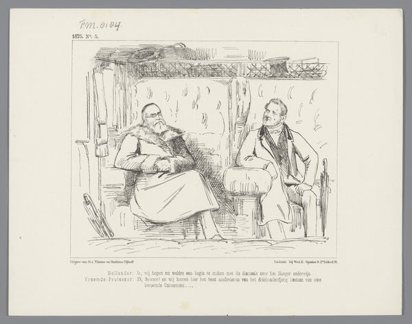 Johan Michaël Schmidt Crans created this print of the "Draft Criminal Code" in 1878 using a technique called lithography. This is a printmaking process where the artist draws on a flat stone or metal plate with a greasy substance, then uses ink to transfer the design onto paper. Lithography was a relatively new technology in the 19th century, enabling mass production of images like this one. Notice how the lines are crisp and the details are clear, allowing the artist to convey a sense of satire and social commentary. The process also allows for easy reproduction and distribution, making it a perfect medium for political cartoons. In this artwork, lithography serves a crucial purpose. It facilitates the wide dissemination of the artist's message, turning it into a tool for raising public awareness and shaping political discourse. It underscores how even the choice of materials and methods can contribute to the work's meaning, blurring the lines between fine art and popular media.
