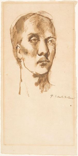Editor: Here we have Max Oppenheimer’s print of Thomas Mann, a drawing rendered with pencil. The energy of the line work, particularly around the head, makes the portrait seem almost electric, vibrating with thought. How would you approach analyzing this portrait? Curator: Let’s examine the formal elements. Notice how the composition is structured. The artist uses line primarily, foregoing traditional shading. Do you see how the density of these lines shapes the face, creating a sense of volume, while simultaneously fragmenting it? Editor: Yes, especially around the eyes and brow – there’s a tension between definition and dissolution there. Curator: Precisely. The pressure of the pencil seems varied, resulting in expressive marks on the paper. Consider also the overall lightness of the print. What effect does the artist achieve with the lack of heavy shadows? Editor: It almost feels like we are seeing Mann's intellectual aura rather than a solid physical presence. Curator: An intriguing interpretation. Consider how the texture and direction of the lines build up form, yet remain open, not fully resolving into concrete shapes. This tension is central to its aesthetic impact. How does that impact the portrait? Editor: The fragmentation adds to the complexity of Mann's character; we are given hints but no concrete answers. That’s a refreshing viewpoint! Curator: Indeed, formalism helps us appreciate how Oppenheimer uses line, composition, and texture to go beyond representation, achieving an evocative emotional and intellectual portrait.