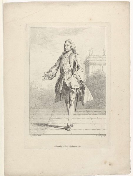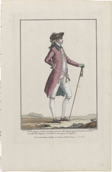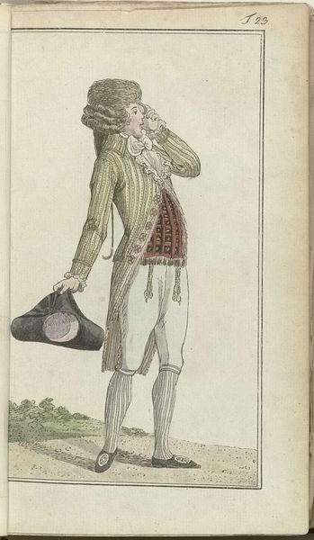 Etienne Claude Voysard created this print, "Gallerie des Modes et Costumes Français, 1778, O 81 : Habit de printemps (...)," in 1778, capturing a moment in French fashion history. The print provides a glimpse into the gendered expectations of the era. The man's elaborate attire, with its silver brocade and pastel hues, challenges conventional notions of masculinity. Simultaneously, this man is clearly of the aristocracy. What does it mean to wear the clothing of the elite? What identities become available, and what identities are foreclosed? Fashion, then as now, was a means of signaling identity and status within the rigid social hierarchies of 18th-century France. This was a time of both revolution and the "Ancien Régime." The emotional resonance of this image lies in its preservation of a fleeting moment, a reminder of the complexities of identity, representation, and power in a bygone era. The print invites us to reflect on how clothing continues to shape our understanding of ourselves and others today.