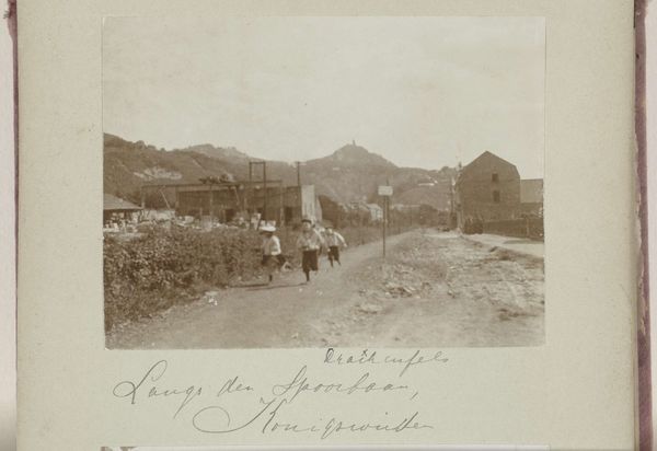 Curator: This gelatin silver print, created around 1916, is titled "Militairen bij loopgraven aan het front op 1500 meter hoogte in de Dolomieten, vermoedelijk Italianen," or "Soldiers near trenches on the front line at 1500 meters altitude in the Dolomites, presumably Italians." Editor: What strikes me immediately is the overwhelming sense of bleakness. The light is flat, the monochrome palette is almost entirely gray and brown. It feels... airless. Curator: The Great War wasn't just fought on a horizontal plane. We see the theatre of conflict pushed upwards into the unforgiving altitudes of the Dolomite mountains, an under-discussed aspect of this terrible conflict. Editor: Indeed. The arrangement of logs in the lower left, seemingly waiting to be added to the rudimentary shelter we see further up the slope creates a stark geometrical contrast with the chaos of the landscape itself. Curator: It emphasizes the soldiers’ vulnerability. They're attempting to impose order on an environment wholly indifferent to their presence, an uncaring and natural space in the theater of this man-made conflict. The sheer altitude itself introduces new and awful conditions to this already tragic environment. Editor: Notice how the figures ascending the slope become progressively smaller, merging with the indistinct landscape, eventually disappearing into the indistinct grey void of the mountains in the distance. There's a symbolic reduction there, a dissolving of individual identity into the monolithic horror of the war machine. Curator: The text inscribed tells a tale of the specific location of the battlefield. Understanding this piece is aided by considering that in the Italian front in WWI soldiers had to face an elevated, freezing battlefield and the perils it held, as well as the horrors of combat. This reality shifts the conversation around the narratives we see represented from this moment. Editor: I'm struck by how much information is conveyed here through tonality and composition. The diagonal pull of the slope, the regimented logs, the diminishing figures—it all speaks to an overarching sense of attrition and, frankly, despair. Curator: Ultimately, I see it as a testament to the often-unacknowledged battlefronts and challenges faced in elevated, frigid warzones, contributing meaningfully to discussions about historical narratives, challenging perceptions about who was involved in conflicts such as World War I. Editor: I agree. Looking at the overall visual economy in play, I have to admit, this piece carries a potent emotional weight.