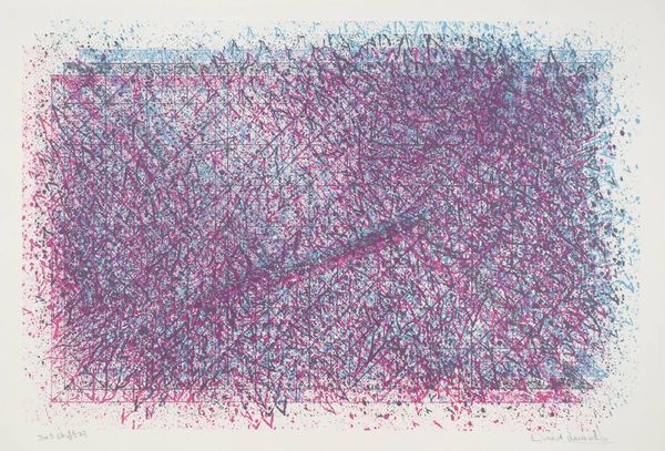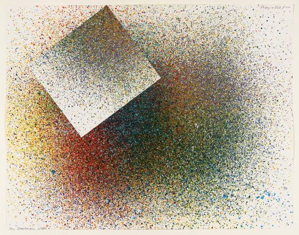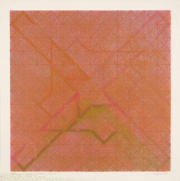 Editor: This is David Leverett's "State of Change." There isn't a date listed for the work but it's in the Tate collection. The colours and the overlaid geometric shapes give it a sense of organised chaos. What do you see in this piece? Curator: The superimposition of the grid creates an intriguing visual tension. Note how the chromatic relationships interact, the warm oranges set against the cooler blues. Do you observe how the work evokes a sense of depth and movement? Editor: Yes, there's definitely a vibration caused by the colour choices. The geometric shapes seem to almost float. Curator: Precisely. It is the artist's manipulation of form and color that dictates our reading of the work, compelling us to focus on the aesthetic experience itself. Editor: It's fascinating how much complexity can be communicated through seemingly simple structures. Curator: Indeed. A reminder that art’s power resides in its formal elements.