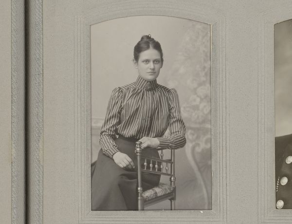 Curator: The piece before us, crafted between 1860 and 1900, is titled "Portret van een zittende jonge vrouw," an albumen print, and believed to be the work of Daniel Nyblin. The portrait presents a seated young woman. Editor: It possesses an almost haunting stillness. The soft sepia tones lend it an air of bygone solemnity. You can almost feel the weight of history and social expectations pressing on this young woman. Curator: The late 19th century was a fascinating period in terms of photographic portraiture. This image emerges within an era marked by the democratization of photography and expanding gender roles, but also stringent social codes and imperial power. How do you think those elements intersect in her representation? Editor: I see it primarily in her reserved demeanor. She isn't overtly emotive, maintaining instead a studied composure appropriate for the time. This image makes me consider the limited agency women had regarding their representation—who held the camera and determined how women appeared to the world, even in something as intimate as a portrait. I wonder what would she choose to express about herself if she had greater influence? Curator: That’s a crucial point to consider. And further to this notion of agency, understanding studio portraiture as a commercial activity tells us a lot about popular ideals concerning femininity at this historical juncture. Did the rising middle classes seek images of their wives and daughters that conveyed status, and domestic competence, through understated elegance? Was the "everyday" self subject to some degree of performance? Editor: Definitely a performance. In scrutinizing her posture and styling, and indeed the ornate patterned upholstery, there is evidence to interpret social status, an implicit narrative for potential suitors or family archives. I imagine this photo acted less as an insight into personality than a material display that enforced gendered and economic power dynamics. Curator: It's a confluence of personal and socio-political identity. These seemingly still photographs held significant public function as they gained more widespread usage. They reinforced visual orthodoxies as much as family biographies. Editor: I walk away reminded how even seemingly 'simple' portraits hold an array of untold stories. We can use these portraits to see echoes of ourselves and perhaps critique these power structures too. Curator: Precisely. There are nuances in the visual language used to assert not only how it used to be, but perhaps also, how it could be instead.