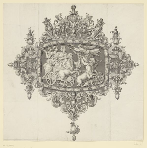Editor: This engraving by Johann Theodor de Bry, titled "Sardanapal in the Bath," was made sometime between 1576 and 1623. The frenetic energy in this domestic scene is compelling. What social commentary might be present within the image? Curator: An interesting question. Considering this was produced during a time of significant social and political upheaval in Europe, especially surrounding ideas of monarchy and power, the portrayal of Sardanapal, who was an Assyrian King known for decadence and ruin, is telling. Notice the grotesque figures, both human and animal, surrounding the central figure. Editor: Yes, that elaborate, grotesque border almost suffocates the main scene! Is it saying something about the context in which this scene existed, beyond just a history painting? Curator: Precisely. It acts as a frame to contextualize Sardanapal’s behavior. Look closely – what do you see these figures *doing* to him? Editor: Well, some seem to be washing or bathing him, but there’s a cruelty to their ministrations. It’s not a loving, caring scene; instead, there’s a tension. What purpose would this piece serve? To depict something like cruelty being masked by normal customs like bathing? Curator: Exactly! Circulated in print form, works like these were incredibly powerful. They served as a means to distribute propaganda and offer criticisms veiled in historical narrative to a broader public that included learned audiences. They acted as political mirrors, didn't they? This print participates in the longstanding tradition of cautionary tales warning against despots. It comments as much on De Bry's own society as it does on ancient Assyria, suggesting the instability of authority, maybe even advocating for alternatives. Editor: So, it’s not just about depicting history; it’s about critiquing contemporary power structures through historical analogy? Thank you, I’ll never look at historical prints the same way again! Curator: It is about the active role of artists in critiquing or bolstering the norms of the artist's moment! That’s the exciting part of history of art: there’s so much that these images illuminate.