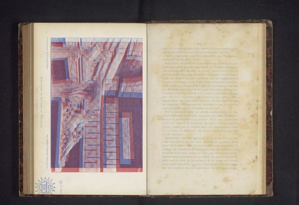 Curator: Here we have "Zaal met sculpturen in het Musée du Luxembourg", a colored-pencil drawing created before 1894, attributed to Bonnamy. Editor: Immediately, I’m struck by the chromatic tension. The red and blue lines seem to vibrate on the page, giving the sculptures an almost ethereal presence. It is rather disconcerting. Curator: Yes, and I think understanding the Musée du Luxembourg’s context helps us appreciate that tension. In the late 19th century, it served as a museum for contemporary art. To display sculptures in this manner, especially rendering them in this fragmented color scheme, might represent an attempt to democratize and make sculpture accessible. Who did it make it accessible to, and why? Editor: Perhaps accessible through reproduction. It looks almost like an anaglyph, the old method for making things 3D, hinting at a desire to make the art present. The stark lines and blocks of color simplify the forms but simultaneously fracture the sculptural images into many component lines and blocks. Curator: Precisely! And we can consider the impact of such reproductions in an era defined by the rise of mass media. How did the dissemination of art imagery alter understandings of national identity and cultural values? Was this democratization genuinely inclusive? These sculptures—classical in form—primarily represented white European ideals, of course, reinforcing dominant cultural narratives of beauty and power. Editor: The formalism contributes to that impression of dominant order. The carefully structured space—the sharp receding lines—contains, almost imprisons, the artistic subjects. And even through its color, the image, being composed only of blue and red, has set limits. The red calls for our eye to recall the white marble. Curator: And perhaps to recall those debates about art education and accessibility for marginalized communities that still reverberate today. This artwork offers an unexpectedly complex window into art's role in constructing and perpetuating cultural norms. Editor: Agreed. Even from my formalist point of view, it provides such an engaging perspective on both the technology and artistry involved in reproduction, creating something visually stimulating despite the constraints of its palette and the inherent limitations of capturing three-dimensional objects on a two-dimensional plane.