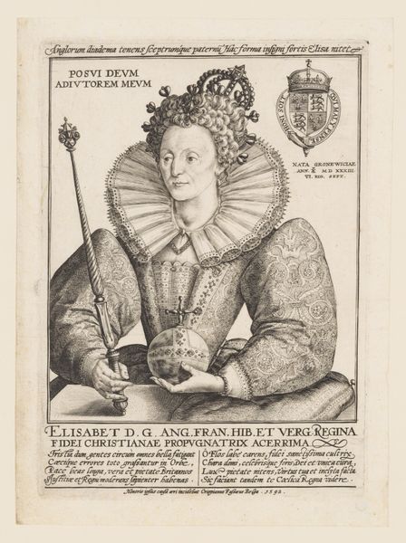 Curator: Today we're looking at "Portretten van de courtisanes genaamd Madame de D.V.E. en Mademoiselle La Neffue," a 1635 engraving by Crispijn van de Passe II, housed at the Rijksmuseum. Editor: Wow, there's an undeniable coolness to this; the starkness of the monochrome, the density of the linework, giving it almost a tactile feel despite being a print. There is almost an intimate rawness here, quite modern. Curator: Indeed, this print employs a strong Baroque sensibility, with a keen emphasis on figuration through controlled lines and forms. The artist uses engraving to carefully differentiate the two women in their texture and details. Note, for example, the difference in their lace collars, their hairstyles. Editor: Exactly! "Madame de D.V.E." on the left seems more adorned, almost weighed down by her embellishments, but that “Mademoiselle” on the right is lighter, perhaps younger—or perhaps it’s the touch of the floral detail softening the blow of it all. Curator: Perhaps a reflection on status? There are certainly layers of information conveyed through composition. Consider the framing ovals: structural, symbolic containers each woman is presented through. Note, also, the bordering texts, giving a further layer to understanding and interpretation. Editor: That contrast is great, but maybe they also invite questions of value? Each carefully inscribed description feels equally valuable as decoration here... is she wealthy? Is she beloved? Perhaps it's left open ended to evoke imagination and the thrill of what lies between these women. Curator: This duality encourages exploration into notions of societal expectations of beauty and the economy of desire that can so overtly define womanhood. It’s a masterful statement conveyed so expertly with just engraving tools. Editor: Definitely. It holds more than its initial monochrome surface presents. It speaks loudly in silent gestures. So often things get louder with fewer words. This makes me feel like picking up a pen, myself. Curator: Absolutely. Van de Passe encourages one to observe details more carefully, making art that is not just visually informative, but rather socially evocative through structural complexity.
