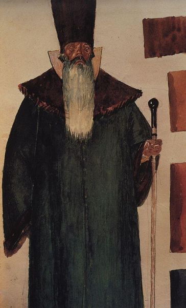 Curator: Let’s delve into Ilya Repin’s striking "Portrait of the Surgeon Nikolay Pirogov," painted in 1881. What's your immediate take on this image? Editor: Well, wow. The immediate feeling is intensity—like gazing directly into a soul that has witnessed so much. There’s a gravity in those eyes, a history etched onto that face. I almost feel I know exactly what kind of painting it is, what Repin tried to tell the spectator... Curator: That intensity is partly due to Repin’s realist approach. Beyond capturing Pirogov’s likeness, Repin situates him as a towering figure, embodying the progressive social values embraced during Russia's reformist period. It's about how he revolutionized field surgery during the Crimean War, performing under fire, a pioneer of anesthesia. He became more than just a surgeon. Editor: That context just deepens the impact. Knowing he's holding a walking stick while not looking frail… I imagine him as Gandalf almost. You look at the steely eyes above that giant Santa Claus beard, and all you want is to follow him towards new surgical wonders! Curator: Indeed. His gaze carries the weight of humanitarian work and the quiet fortitude to advance scientific progress in an autocratic state. Pirogov also documented war traumas meticulously; the systemization and distribution of this medical knowledge was progressive and radical during that time. Editor: He really comes across as someone with immense knowledge, almost like an icon. His gaze feels very grounded and assured. A rock in a raging storm, perhaps? And technically, look at those subtle variations of dark shades in his clothing… like the hidden mysteries in an endless night. Curator: Exactly! The masterful rendering—especially Repin’s application of impasto oil paint—builds volume, accentuating Pirogov’s powerful presence but he's not just immortalized by Repin but by those reforms during one of Russia’s turning points, right before the assasination of the Czar Alexander II. His gaze encompasses and understands this world! Editor: Mmm, now that you lay all of this bare I can understand and reflect back that the more I dive in to details about this era, this man and what Repin felt—the more complete this whole experience and story feels, truly transforming!