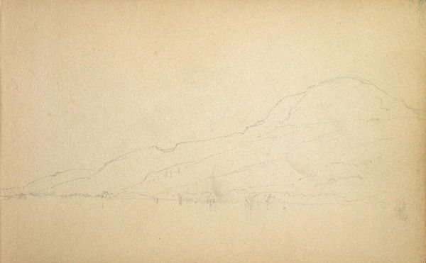 Curator: This is Benjamin Champney's pencil drawing, "Lake Mooselucmaguntic, Maine," now residing at the Harvard Art Museums. Editor: It's remarkably simple—a minimalist landscape evoking a sense of serene distance. The delicate pencil work and the expansiveness of the paper really amplify that quiet mood. Curator: Indeed. Champney lived from 1817 to 1907, and his work often reflects the Romantic movement's reverence for nature and the sublime. Considering the historical context, what do you make of the depiction of nature? Editor: I see a stark contrast between the untouched wilderness and the encroachment of civilization, a theme frequently found in Hudson River School paintings. The composition, with the distant mountains and reflective lake, pulls the eye into a deeper contemplation. Curator: Yes, it also speaks to the complex history of land ownership and access, particularly in relation to Indigenous peoples and colonial expansion. It's a reminder that landscapes are never neutral. Editor: The very sparseness of the lines emphasizes the fragility of the scene, perhaps even subtly critiquing the impact of westward expansion. Curator: Absolutely, this piece invites us to reflect on the narratives we construct about place and identity. Editor: Well, for me, it serves as a potent reminder of art's capacity to distill complex concepts into deceptively simple forms.