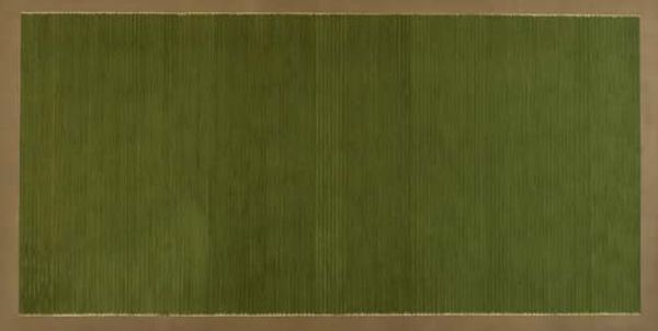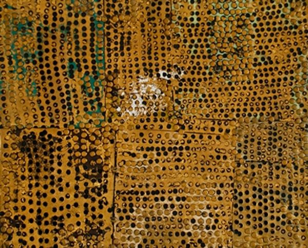 Editor: So, this is Helmut Federle's "Legion XVII" from 1997, made with mixed media. I’m immediately struck by the…texture. It's almost like looking at rows of something decaying. What jumps out at you when you examine this piece? Curator: The initial reaction centres on the interplay between line, color and texture. Note how Federle uses horizontal lines to structure the canvas, creating a stratified visual field. These lines, rendered in varying shades of what appears to be ochre, black and beige, are not uniform; they’re broken, smudged, and layered, suggesting process. What kind of material process might have created this effect, do you imagine? Editor: Maybe some sort of scraping or layering of paint, perhaps even the addition of other materials to build up the texture? The texture makes me think of weathered wood or distressed metal. It has a very tactile quality. Curator: Precisely. The formal analysis encourages to perceive these visual phenomena and reflect on these effects, as ends in themselves, not as symbolic tools. The texture introduces the temporal dimension to a rather static geometrical composition. This pushes it outside pure abstraction. What happens to your initial response if we imagine this image as simply line, texture, and color and not decay? Editor: If I remove the decay association, I start to appreciate the individual qualities of each line. The varying textures and subtle color shifts become more prominent, creating a unique visual rhythm. I see now how Federle focuses on pure visuality by letting color, texture, and lines coexist in dynamic tension. Curator: Indeed, stripping the artwork of symbolic associations allows us to appreciate the fundamental elements and relationships crafted by the artist, thus enabling a deeper phenomenological and aesthetic experience. Editor: That's an important reminder about focusing on what's visibly and materially present, rather than jumping to meaning right away.