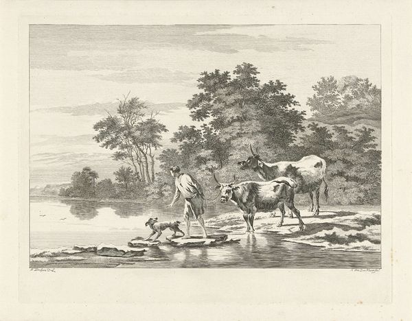 Here we see H. van Dreven’s river scene with boats rendered in delicate lines. Notice the motif of the boatman pulling his vessel upstream. Across time, the solitary boatman has often symbolized perseverance and human will against the currents of fate. We see echoes of this figure in ancient Egyptian funerary boats, guiding souls to the afterlife, and in Charon, ferrying souls across the river Styx. Consider the Romantic painters of the 19th century, like Caspar David Friedrich, who depicted figures in boats as symbols of the individual's journey through life. Observe the stoic posture of Van Dreven’s boatman. His struggle is palpable and represents the enduring human spirit, a symbol that resonates across centuries and cultures, constantly evolving yet always present.