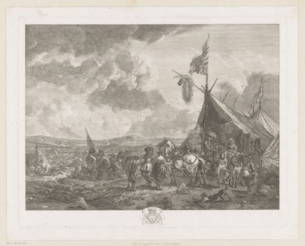 Ludolf Backhuysen made this drawing of a shipwrecked vessel and survivors salvaging their goods on a stormy night. It's undated but Backhuysen was active in the Netherlands during its Golden Age in the 17th and early 18th centuries. The image visualizes the drama of maritime disasters, which were common given the importance of seafaring for the Dutch Republic's trade and military power. Backhuysen, himself the son of a shipmaster, specialized in marine paintings and drawings, capturing both the beauty and the dangers of the sea. This drawing serves as a reminder of the human cost of maritime trade, showing survivors struggling to rescue what they can from the wreckage. Understanding this drawing requires considering the role of the sea in Dutch society and the risks associated with it, and art historians would want to look into archival sources, such as shipping records and contemporary accounts of shipwrecks to better understand the context in which it was produced. Ultimately, this piece is an entry point into understanding the complex relationship between the Dutch and the sea.