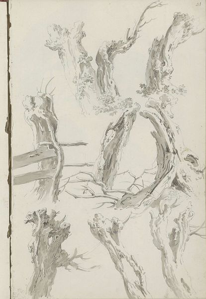 Curator: What an intricate fantasy! The composition of Jean Bernard Toro’s "Trophées Nouvellement Inventez" feels like a stage set, all theatrical drapery and precarious balancing acts. Editor: Indeed. What we are looking at is a drawing dating back to 1716, now held at the Metropolitan Museum of Art. It seems to exemplify Baroque sensibilities—celebratory, decorative, and overflowing. But who are these trophies really for? Curator: Well, look at this lion at the base, it reminds me of someone's spoiled Persian cat lounging among the spoils of war! Perhaps this piece critiques that relationship. Editor: Or perhaps it reinforces it, even unintentionally. Images of conquest and power always demand careful interrogation. I can’t help but notice that the drawing emphasizes not only martial prowess through weaponry but also a sense of divine endorsement—see the cherubs floating above. Curator: Absolutely. The cherubs and laurel wreaths soften the potential severity of all the weaponry. It makes it rather frivolous and delicate—Baroque does like its drama. Almost comical at times. Do you think there is an aspect of parody embedded? Editor: Perhaps—the era certainly knew its spectacles. But consider the long legacy of violence that underlies the aesthetics. Aren't these celebratory drawings always implicated, even if subtly, in the narratives they depict? Who gets remembered and how? Who gets conveniently erased from view? Curator: Food for thought! Still, the line work itself… exquisite. Almost as if the violence becomes aestheticized through craft itself. I can easily become absorbed by the texture. Editor: Absolutely. Even our pleasure can't escape interrogation. We should not shy away from such complexity; acknowledging these multifaceted relationships within artworks like these ensures that we can confront difficult questions of power dynamics today. Curator: Such an eloquent and urgent approach. Ultimately, perhaps artworks like these allow us to be curious about past and present atrocities simultaneously. Editor: It requires constant effort, absolutely. Approaching images in a way that demands we bring a radical, and honest, approach, acknowledging intersectionality.