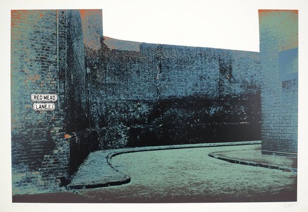 Editor: Here we have Gerd Winner's "Dockland I," currently held at the Tate. The high brick walls surrounding a narrow street give it a rather imposing, almost claustrophobic feel. What do you see in this piece? Curator: Considering Winner's background and the period, I view "Dockland I" as a commentary on the socio-economic shifts in urban landscapes. The starkness evokes the decline of industrial areas and their impact on working-class communities. How does the printmaking medium itself contribute to this message? Editor: Well, the flatness and graphic nature emphasize the harsh realities, devoid of romanticism. Curator: Exactly. And perhaps, questions of accessibility to these spaces, and who they truly serve. It’s a potent statement about power, architecture, and the human condition. Editor: I see it now; it's more than just a street scene!
