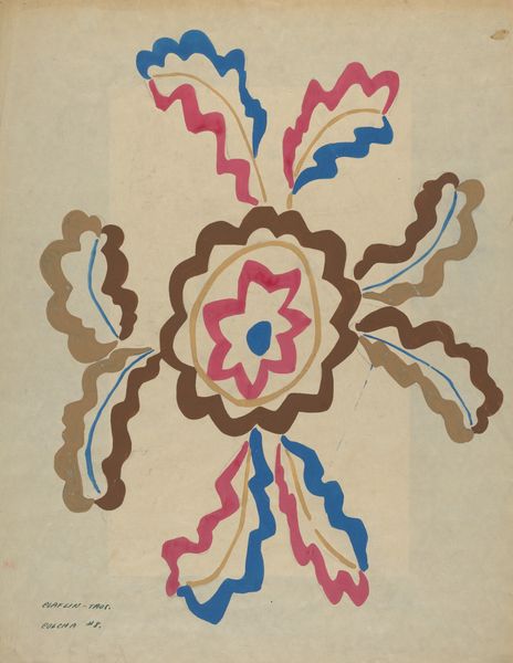 Etna Wiswall made this 'Colcha' out of paint, though I don't know when exactly. The design really zings, doesn't it? Look at the palette – pinks and yellows snuggling up to blues and browns. It's like a garden party with a slightly weird dress code. Wiswall lays down these colors like she's frosting a cake, each stroke deliberate, but also kind of playful, not too worried about staying inside the lines. The paint itself looks smooth, almost flat, like gouache, soaks into the paper giving it a matte finish. I'm drawn to this one little flower, right in the middle – it’s like a tiny explosion of pink and blue, all packed into a compact form. It’s a microcosm of the whole piece, really, a burst of energy contained within a simple shape. This piece reminds me of the work of Hilma af Klint, in how she uses patterns and color to represent the natural world. It is a testament to the power of art to transform everyday objects into something magical.