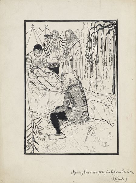 Curator: Looking at this ink drawing from 1808, titled "Trapping the Fox" by Utagawa Toyohiro, now housed at the Metropolitan Museum of Art, I am immediately struck by the sense of contained energy in the composition. The dark inks seem to vibrate against the white of the page. Editor: Contained energy is a perfect description! The composition is fascinating – the juxtaposition of what looks like an open, moonlit night, against the incredibly constrained scenario of capturing this fox. It seems ripe with sociopolitical tension, perhaps exploring the limits placed on individuals? Curator: The visual language of entrapment here is deeply connected to Ukiyo-e traditions. Consider the use of the fox, a figure often representing slyness, trickery, or even dangerous feminine wiles in folklore. By “trapping” this creature, what ideologies are at play? Editor: Indeed, foxes throughout various cultures embody duplicity and hidden desires, serving as symbols in the social dynamics between humans, nature, and the spiritual realm. Looking at this image, one can observe this very moment where control is being asserted. Curator: Exactly, we could examine this work through a feminist lens. What does it mean to capture something deemed "wild" or "cunning"? How has that translated into social controls imposed particularly on women or other marginalized groups? What behaviors or ideas are the characters actively subduing here, in visual terms? The haystacks themselves feel symbolic in this regard – containers for certain notions of tradition. Editor: I see in the characters the embodiment of ancient folklore around spirit possession; I also think about ritualistic performances of control, dominance, and how power is maintained through visual representations. Curator: And it's essential to remember, ukiyo-e art itself circulated within specific socio-economic contexts. Consider the merchant class consuming such imagery: were they reflecting on their own social climb through such a symbol? Or considering more ancient traditions as Japan transformed politically? Editor: This piece certainly holds enduring relevance; through a study of historical and social symbols it’s quite interesting how we arrive at questions that still echo in our world. Curator: Definitely a reminder of how symbols both shape, and are shaped by, the communities they represent.