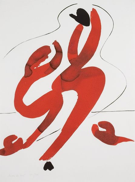 Howard Hodgkin made this print, Girl at Night, and the overlapping shapes of pink, red, and white create a figure that feels both present and dreamlike. His process, like any art making, is about layering, not just colors but also emotions and memories. I love the way the shapes interact; how the red curves suggest arms or maybe just the energy of a gesture. The surface has a kind of velvety texture, which softens the intensity of the colours, especially up against the dense black background. The white areas aren't just blank spaces; they push forward, giving the composition its rhythm. Hodgkin's work always reminds me a little of Matisse, in how he uses color to evoke a mood and memory, but with a uniquely personal language. It's about suggesting a feeling rather than illustrating a story, leaving space for our own interpretations and emotional responses.