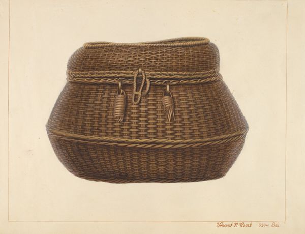 Dimensions: overall: 35.3 x 26.7 cm (13 7/8 x 10 1/2 in.) Original IAD Object: Diam: 15 5/8"; 8 1/4"high; 11 3/4"high to top of handles.