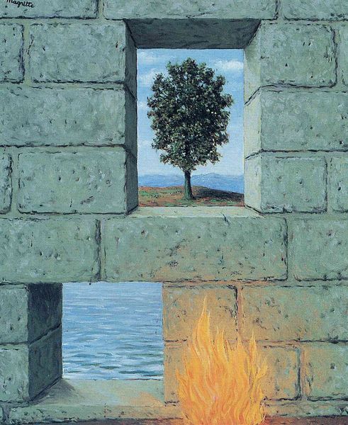 René Magritte, a Belgian artist, painted "Invisible World" during a period of immense social change, shaped by the aftermath of World War I and the rise of new ideologies. Magritte’s surrealist style challenges our perceptions of reality. In this painting, a large rock stands imposingly before an open doorway which frames a tranquil seaside. What is usually outside is now inside and vice versa. The rock, a symbol of permanence and weight, contrasts sharply with the fluid, expansive sea and sky, playing with the concept of space and what we consider "real." Magritte once said: "My painting is visible images which conceal nothing; they evoke mystery and, indeed, when one sees one of my pictures, one asks oneself this simple question 'What does that mean'?". Through his work, Magritte prompts us to question the norms that shape our understanding. "Invisible World" invites us to reflect on the hidden forces that shape our existence, challenging us to look beyond the surface and to consider the mysteries that lie beneath.