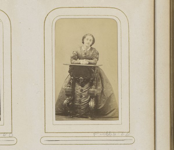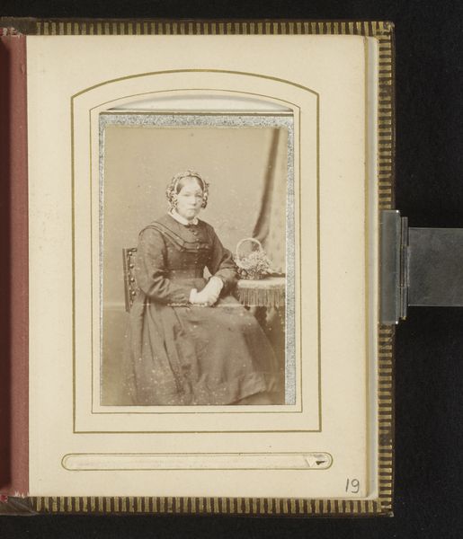 Charles Thomas Newcombe captured this 'Portret van een zittende vrouw' using photography, a relatively new medium at the time. Notice the subject’s modest attire, a heavy, dark dress. The color black and the covered-up silhouette can be seen as a symbol of mourning or solemnity, recurring throughout art history in various forms, from Renaissance portraits to contemporary fashion. We can trace the iconography of dark clothing back to ancient Roman and medieval customs, where it signified humility and piety. Observe the way the woman’s hands are clasped in her lap. It is a gesture of restraint and composure. This motif echoes through time, appearing in depictions of saints, nobility, and the bourgeoisie, each time adapting to reflect the values of that era. These gestures are often interpreted as expressions of inner turmoil or repressed emotion, resonating with the viewer on a subconscious level. The cyclical progression of this imagery speaks to the enduring power of cultural symbols and their ability to evoke deeply ingrained emotional responses.