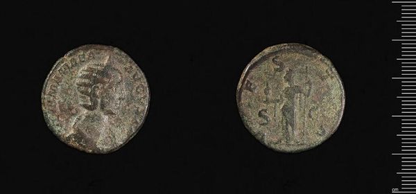 Editor: Here we have a Sestertius of Alexander Severus from the Harvard Art Museums. It's a hefty coin. What strikes me is how much it has circulated. How does it fit into the history of Roman imagery? Curator: Roman coinage wasn't just currency; it was propaganda. Images of emperors, deities, and military victories reinforced imperial power. This coin, though worn, speaks to the emperor's desire to project strength and legitimacy through controlled imagery circulating among the populace. Who did it reach and what did it communicate? Editor: So, it’s as much a political statement as it is money. Did everyone have access to these images? Curator: Not equally. While coinage reached various levels of society, access and understanding would have varied. Consider how literacy rates, trade routes, and social hierarchies influenced the reception of these visual messages. The coin’s imagery, therefore, had a stratified impact. Editor: That makes me think differently about its role in society. Thank you! Curator: And it shows how the political impacts our understanding of something as seemingly simple as a coin.