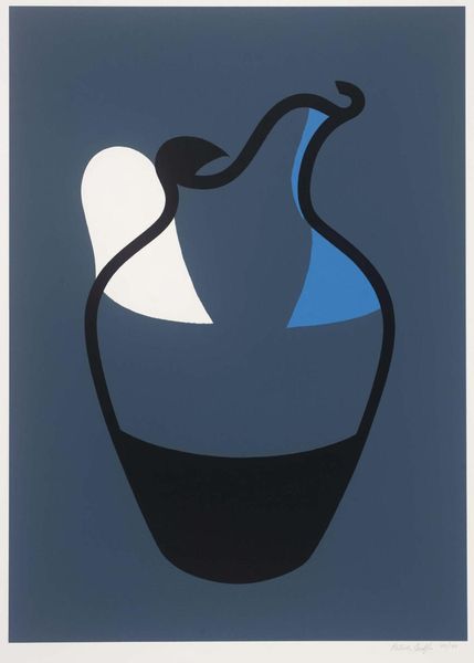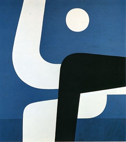 Richard Mortensen created this abstract composition, "Un ronde d'un nuit d'éte" using cut paper in shades of grey, white and blue. At first glance, the stark contrast between the colors evokes a sense of night and day, light and shadow. The composition is divided into distinct horizontal layers, each interacting with the other to create a dynamic interplay of form and space. The blue form drips down into the white shape below, suggesting a connection between the upper, more amorphous realm and the lower, more defined space. The white form has a cut-out in the bottom left, which invites the viewer's eye to travel around the composition in a cyclical manner. The tension between these shapes prompts questions about representation and reality, form and content. Mortensen's strategic use of shape, color, and composition invites us to contemplate the deeper structures that underlie our perceptions and experiences. Ultimately, the interpretation is left open, inviting ongoing dialogue and new ways of seeing.
