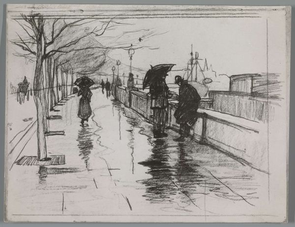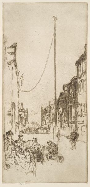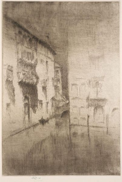 Earl Stetson Crawford made this print, Green Umbrellas, Orvieto, Italy, using etching. The whole scene is made of marks, these tiny little lines that together build up the image. To me, printmaking is so similar to artmaking itself: it's all about process and steps. Look at the way the marks create texture, especially in the buildings. It’s almost like Crawford is letting us feel the age and the history of the place. The rain is made of thin, vertical lines, like the quick strokes of a pen. And down below, notice the way he etches the reflections in the puddles. It's like another world existing right there on the street. The lamppost in the center is so interesting. It has a heart shape in it. Maybe it's just a design element, but I think it also adds a touch of warmth to an otherwise gray and rainy day. You know, there's something about Edward Hopper, with his urban scenes. They both capture these moments in time.