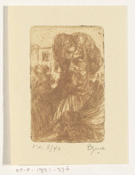 Editor: This is Anders Zorn's "Gerda Hagborg III" from 1896, an etching on paper currently held at the Art Institute of Chicago. The woman's fur collar looks incredibly textured. How did Zorn achieve such detail with etching, and what does it tell us? Curator: Zorn's skill in etching reveals much about the democratization of art and the art market at the turn of the century. The lines that define her face, the quick, nervous strokes making up the fur… They weren't just aesthetic choices, but direct results of his method. Consider the physicality, the acid biting into the metal plate. Editor: So, you are saying his technique reflected the industrial processes of the time? Curator: Exactly! Printmaking allowed Zorn to reproduce and sell his art to a wider audience, blurring the lines between "original" art and commodity. Her fashionable attire and opulent fur suggest a world of conspicuous consumption, carefully constructed through both her appearance and the artwork intended to reproduce it. The labour invested is therefore deeply intertwined with commerce, would you not agree? Editor: That's fascinating; I never considered the print's replicability in the context of 19th-century consumer culture. So the very nature of the medium contributes to the understanding of both the subject and the market for art. Curator: Precisely! It's a dance between artistic expression, the means of production, and societal values reflected through a seemingly straightforward portrait. Editor: I appreciate that connection; it completely shifted how I view this artwork. Thank you for the enlightening perspective. Curator: It's crucial to examine both form and historical-economical contexts to grasp the artist’s aims fully. My pleasure!