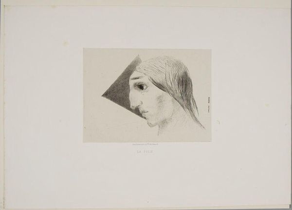 Curator: Here we have Odilon Redon's "La largeur de l'aplatissement de l'os frontal," currently residing at the Harvard Art Museums. Editor: Initially, I'm struck by the stark contrast of light and shadow, and the rather severe expression on the subject’s face. Curator: Redon was deeply invested in the power of suggestion, especially through the symbolic use of physiognomy. The pronounced brow, for example, might signify intellect or perhaps a brooding nature. Editor: Or is it perhaps about reclaiming a narrative? Redon created art during a time when physiognomy was used to support racist ideologies, but his work transcends this. It's a complex study of perception. Curator: Indeed, Redon challenges viewers to interpret beyond superficial appearances. He invites a deeper psychological reading. Editor: Ultimately, it’s a reminder of art's capacity to both reflect and question societal norms. Curator: A poignant reflection that resonates across generations.