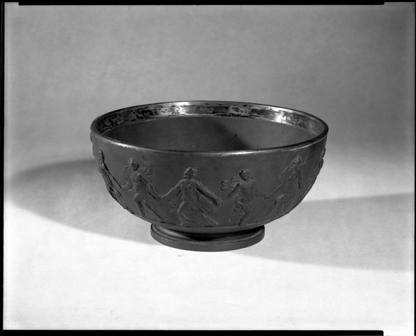 Curator: This shallow dish, adorned with putti in relief, was crafted by Wedgwood. Doesn't it evoke a sense of serene antiquity? Editor: It does, but I immediately think of the factory floor. These replicated scenes, the precise mold work, it’s industry masquerading as art. Curator: Perhaps, but the artist transforms industrial processes into something almost...dreamlike. I see cherubs playing, echoes of Renaissance frescoes captured in clay. It feels like a whispered secret. Editor: I see the commodification of desire, Wedgwood streamlining classical imagery for mass consumption. The material itself, the scale of production, speaks to a different kind of story. Curator: Maybe, but it also speaks to beauty made accessible. And, in its own way, a longing for something more. Editor: True, and regardless of its high-minded aspirations, the material tells its own story.