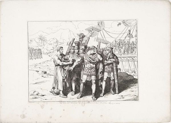 Editor: This is a drawing in ink by Wilhelm Marstrand, dating back to 1860. It's titled "Draft for the painting in Chr. IV's Chapel in Roskilde 'Chr. 4. on the Trinity.'" The mood feels very active, lots of different characters, seemingly on a ship. What can you tell me about this work? Curator: Well, let's consider the drawing as a record of labor. Marstrand, as a Romanticist, engages with historical narratives. But before we get to the grand chapel painting, look at this preparatory sketch. It lays bare the artist’s process. What materials did he use and how does the drawing's sketchiness reflect a particular stage of production? Editor: It looks like pen and ink on paper – not expensive materials. It’s really quite simple, almost like a blueprint. The sketchiness definitely implies this wasn't the final product. Curator: Exactly! Think about the labor involved. Not just Marstrand's, but the unseen labor supporting his practice—preparing the ink, sourcing the paper. Moreover, consider the social context of Romanticism. The market demand for history painting influenced Marstrand’s production. Editor: So, this drawing provides a glimpse into the means of production, before it gets turned into something "high art" Curator: Precisely. This drawing exposes the materiality and labor beneath the polished surface of the intended final artwork. It almost democratizes art. How does viewing art with attention to production, labor, and consumption reshape our appreciation? Editor: That’s interesting, I never really thought about a piece of art in terms of the materials and processes. It really puts the ‘work’ in artwork. I’ll never look at drawings the same way again! Curator: Wonderful! It also shows that every sketch contains the seed for cultural production.