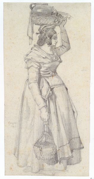 Christen Købke made this small drawing, "Young Girl Kneeling on a Chair," using pencil on paper. The sketch presents a young girl in profile, her form delineated with delicate, tentative lines that capture the soft fall of fabric and the gentle curve of her posture. Købke’s use of line is particularly striking; it's economical yet descriptive. The lines do not merely outline; they suggest form and texture, creating a sense of volume with minimal means. The composition, though simple, evokes a feeling of intimacy. The girl's kneeling position and inward gaze suggest a moment of private reflection. The limited use of detail focuses our attention on her figure, inviting contemplation of her inner world. The drawing's modest scale enhances this sense of intimacy. It's a study in quiet observation, a glimpse into a moment of everyday life elevated through the artist's sensitive rendering. Such works remind us that profound artistic expression can often be found in the most unassuming of subjects.