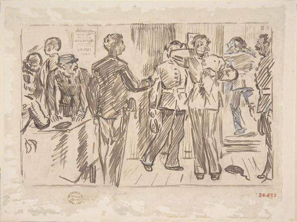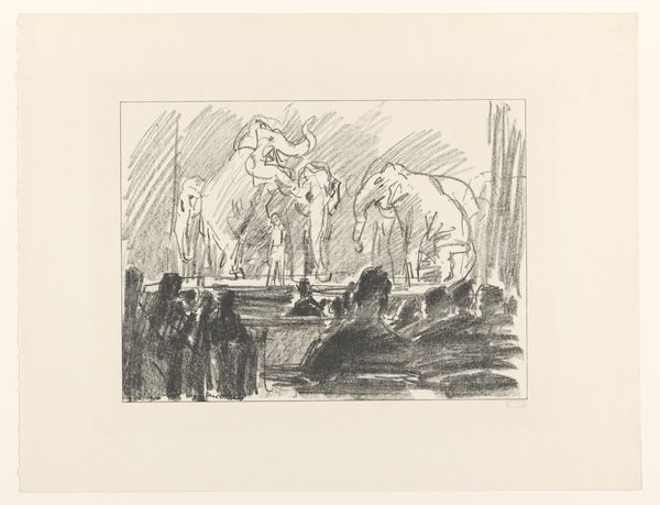 Isaac Israels made this lithograph titled Kozakkenkoor, or Cossack Choir, with crayon, on paper. The first thing I see are these bold, dark strokes. The marks are so immediate, like he’s trying to capture a fleeting moment, a burst of sound. I love art that feels urgent. The texture is all in the strokes. You can almost feel the grit of the crayon on the paper, a kind of raw energy, and even though it's a simple black and white, there’s a whole range of tones created by the density of the marks. Look at the way he suggests the faces in the crowd, just a few quick lines and smudges. It’s not about detail, it's about the overall feeling of the scene. This reminds me a bit of Daumier, actually, with his gritty depictions of urban life, but Israels has his own way of capturing the pulse of the moment, that raw energy. It is a reminder that art isn’t about perfection.
