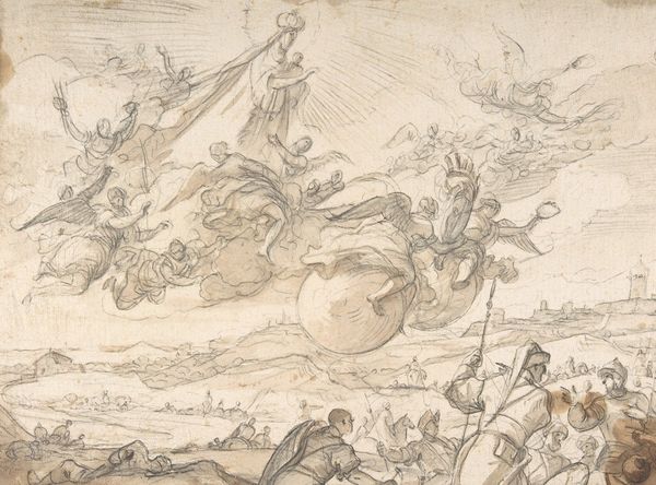 Giovanni Domenico Tiepolo rendered this image of God the Father with ink wash, populating the scene with angels and cherubs. The figure of God is particularly striking, rendered as an omnipotent yet human-like figure, an image drawn from centuries of Judeo-Christian tradition. Consider how the motif of the divine figure, surrounded by celestial beings, echoes across cultures and epochs. From ancient depictions of Zeus enthroned on Mount Olympus to Renaissance portrayals of heavenly ascensions, the image of a powerful, central figure flanked by lesser entities recurs, a potent symbol of authority and veneration. The cherubs themselves, often depicted as innocent, winged children, symbolize divine love and purity, yet their presence also taps into deeper, perhaps subconscious associations with childhood and innocence. This interplay of symbols speaks to our collective memory, an enduring and powerful narrative device that engages us on a deep, subconscious level. The cyclical progression of this symbol emphasizes how it has resurfaced, evolved, and taken on new meanings across diverse historical contexts.