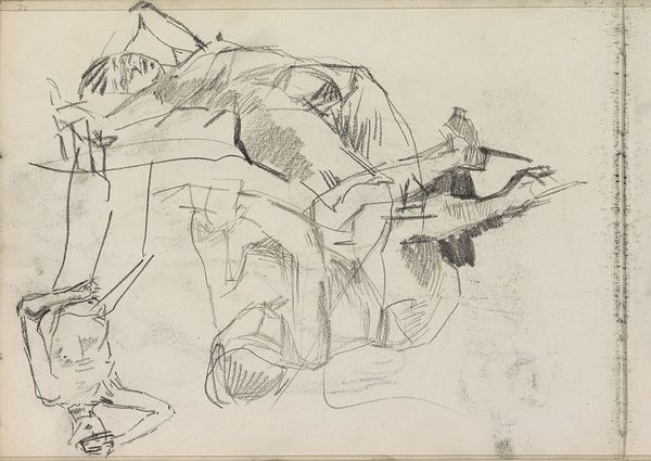Curator: Welcome. Let’s consider Herbert Lewis Fink’s etching “Sailboat Race,” created sometime between 1955 and 1958. The print is a study in blacks, whites, and grays. What are your initial thoughts? Editor: Chaos. I mean that in the nicest way possible. It's like looking at a regatta through a rainstorm. I see boats, but they are ghostly and ephemeral, captured in this frantic dance of lines. Beautifully frantic, mind you. Curator: The beauty you note resides, I think, in Fink’s mastery of line. The density and variation create depth and movement. Observe how certain lines are confident, assertive, delineating form, while others are almost hesitant, suggesting transience. Editor: It’s that transience that gets me. It’s as if Fink is trying to capture not just the image of the sailboats but the feeling, the kinetic energy of the race itself. Do you think he intended it to be so abstract? Curator: Abstraction is key. The image doesn't strive for literal representation, it aspires to distill the very essence of "sailboat race." Think of it not as a picture *of* sailboats, but as an articulation *of* the idea, the sensation of a sailboat race. Consider the thematic emphasis of movement and ephemerality, and consider that as related to post-war abstract aesthetics. Editor: That makes perfect sense, placing the viewer in the heart of the race with the boats surging around them. The monochromatic palette also contributes, creating a timeless quality. I keep finding myself wondering about the process. It couldn’t have been simple, carving this out. Curator: Etching requires both skill and patience, allowing for precisely the effects we see here—lines so fine and subtle they seem to vibrate on the paper, and others possessing a fierce, almost brutal directness. There is tension in the duality. Editor: Looking closely, it almost feels less like an image of a sailboat race and more like a visual score, you know? Each line, each shade a note in this dynamic composition. Curator: A very astute reading. Considering the careful articulation of tones, yes. It brings a new understanding of rhythm into focus here. Editor: Well, this was more than meets the eye, wasn't it? I won't look at sailboat races quite the same way again! Curator: Agreed. The capacity to compress and translate the sensation of the sailboat race into a visual, graphic system rewards careful inspection.