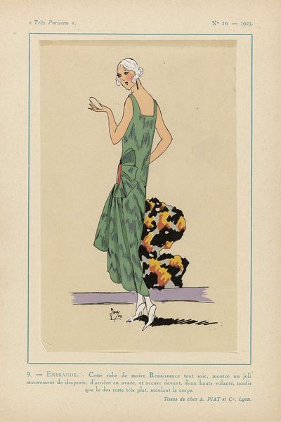 This fashion plate, Création Lucien LELONG - SPHINX, No. 11, Pl. 11, by G-P. Joumard, was made in 1925 using some kind of printmaking technique. I'm not sure exactly how it was made but there is something so charming and so old fashioned about the colours here. It's such a strange drawing; the line work feels quite perfunctory, but there's an appealing and tender quality in the rendering of the woman's face. The way the green dress hangs so loosely, almost like a child's drawing of clothes. Yet, it's the bizarre fur-like cape or train that grabs my attention. The rendering of the concentric lines, creating this almost snail-like form, is so strange and alluring. What's that about? It reminds me of some of the weirder fashion drawings by Erté, who also delighted in the strange and theatrical. There’s something so fun about seeing these images, a reminder that art is a conversation, an ongoing and ever-evolving exchange of ideas!