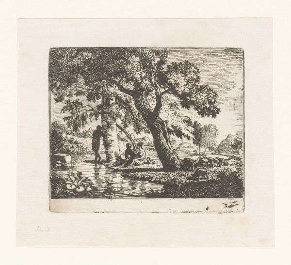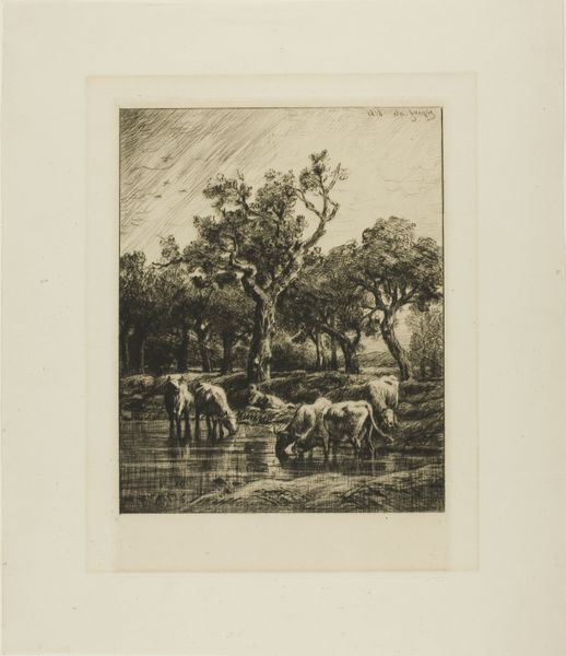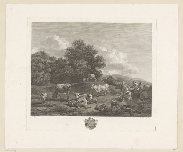 Jean Louis Demarne etched this landscape with figures, livestock and a water trough sometime in the late 18th century. The presence of livestock drinking from a trough is a potent symbol of rural sustenance. In earlier times, the provision of water was often linked with divine blessing and communal well-being. Observe how this scene echoes in ancient pastoral traditions: the image of animals sustained by water appears in biblical allegories and classical myths. Consider Europa riding the bull, or the many images of the Good Shepherd tending to his flock. In those depictions, water is not just a necessity; it's a symbol of life's nurturing force. Demarne's print invites us to reflect on the enduring relationship between humans, nature, and the rituals that sustain us. This scene is not just a snapshot of rural life but an echo of archetypal themes that resonate across time and cultures.