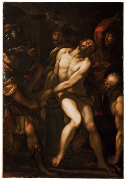 Curator: Well, hello there. I am getting total Baroque decadence. Look at this explosion of fleshy forms, soft lighting, cherubic babes hiding in the trees—it feels like a hot summer nap in a very luxurious garden. Editor: Indeed, this is Luca Giordano’s painting of Hercules and Omphale. The painting is composed using oil paints on canvas and plunges the viewer straight into a mythological world. Curator: Luca who? Ah, never mind that. Okay, so Hercules, right? Mr. Muscles and Might. But he looks... sort of henpecked. He is practically cross-eyed as he bobs that distaff with a ridiculous fluff of wool, all the while eyeing the lounging Omphale with what seems like regret. That is my take anyway. Editor: This is precisely Giordano's clever twist on the Herculean myth. It shows the hero stripped of his virility. Omphale holds his club and wears the lion's skin, both symbols, appropriated as hers, emasculating him to show her dominion. Curator: Ah, the ultimate role reversal! The painting oozes with commentary on the eternal struggle between the sexes, or, I would say it gently ribs it! Giordano's take is lighter than air. I detect nothing angry, abusive, and so on, just playful. It all melts under that dreamy light. Editor: Indeed, the distaff symbolizes the domestic sphere to which Hercules has been reduced. His legendary strength and heroic feats amount to…winding yarn, while Omphale’s apparent vanity—preoccupied as she is with admiring herself in the mirror—serves to heighten the image. Curator: So it's all about these symbolic trinkets, you mean, those emblems… This work doesn't scream power or male aggression to me. But vulnerability, sensuality and so on are there in abundance. What are those playful cherubs in the trees up to, by the way? What is the cultural read? Editor: Their playful behavior hints at the mischievous nature of love. They create a sense of whimsy that tempers the painting's more serious undertones. Through all that the image remains quite erotic, wouldn't you say? Curator: Well, I'd say that the fellow can barely breathe because the whole canvas oozes sexual and sensual heat, that is what the image screams. A painting, as I see it, does more than symbolize. Thank you for leading me along there! Editor: An exquisite vision of art through emotion. Always my pleasure.