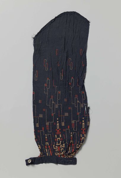 Editor: So, here we have a “Woman’s cap,” dating from around the 20th century. It’s an anonymous work currently held at the Minneapolis Institute of Art, seemingly constructed from a mixture of fibers, including cotton and silk textiles. The texture and colour makes me think of stories handed down, things lovingly preserved. What first jumps out at you? Curator: Oh, absolutely! It whispers tales of skill, tradition, and perhaps a touch of playful defiance, doesn't it? It's hard to pinpoint exactly *where* it's from, which actually adds to its intrigue. The haphazard embellishments - like confetti moments after a grand celebration! - hint at individual artistry. Have you ever thought about how clothing acts as a canvas for silent expression? Editor: That's a lovely way to put it. I hadn’t considered the 'confetti' aspect! The cap seems functional, but you're right; the pops of colour around the top and that amazing, almost architectural braid cascading down the back elevate it beyond mere utility. Curator: Precisely! It makes me ponder, what kind of stories might this cap hold? Dances attended, secrets whispered under starlit skies, maybe even quiet acts of rebellion woven into its very seams. Imagine the hands that crafted it, the pride instilled in each stitch...Do you get a sense of how long this could have taken? Editor: Definitely a labour of love. Considering the detail in the braid and the careful placement of the decorative elements, probably days, if not weeks, of dedicated work. It gives me a new appreciation for the artistry embedded in everyday objects. Thanks for the insights! Curator: My pleasure! And for me, it's a reminder that art isn't always confined to galleries, it lives and breathes within the objects that shape our lives.